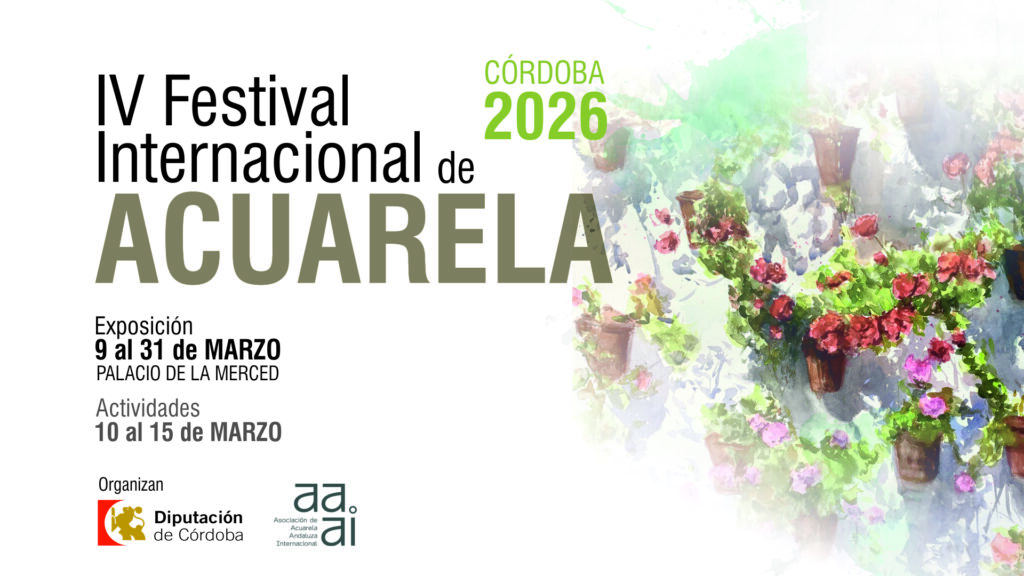 El IV Festival Internacional de Acuarela Córdoba 2026 es una celebración única de la acuarela y el arte contemporáneo. Con exposiciones internacionales, talleres interactivos y un programa lleno de actividades culturales, es el evento ideal para descubrir la riqueza artística de la acuarela y conectar con creadores de todo el mundo.